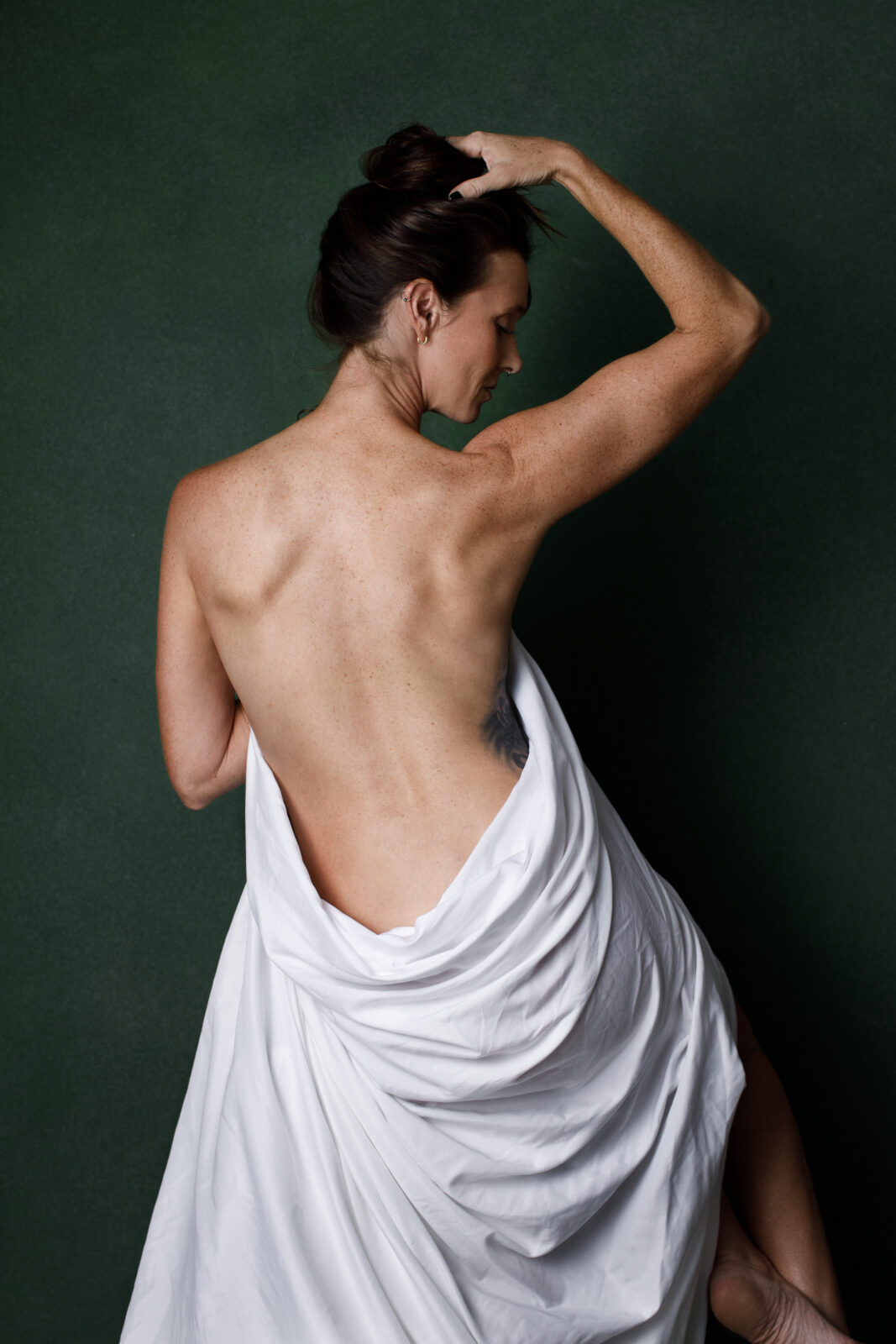And sometimes, the most powerful statement comes from the simplest piece—like a plain white sheet. What feels basic at home transforms in front of the camera into something sensual and sexy. It highlights and covers all the right places.
